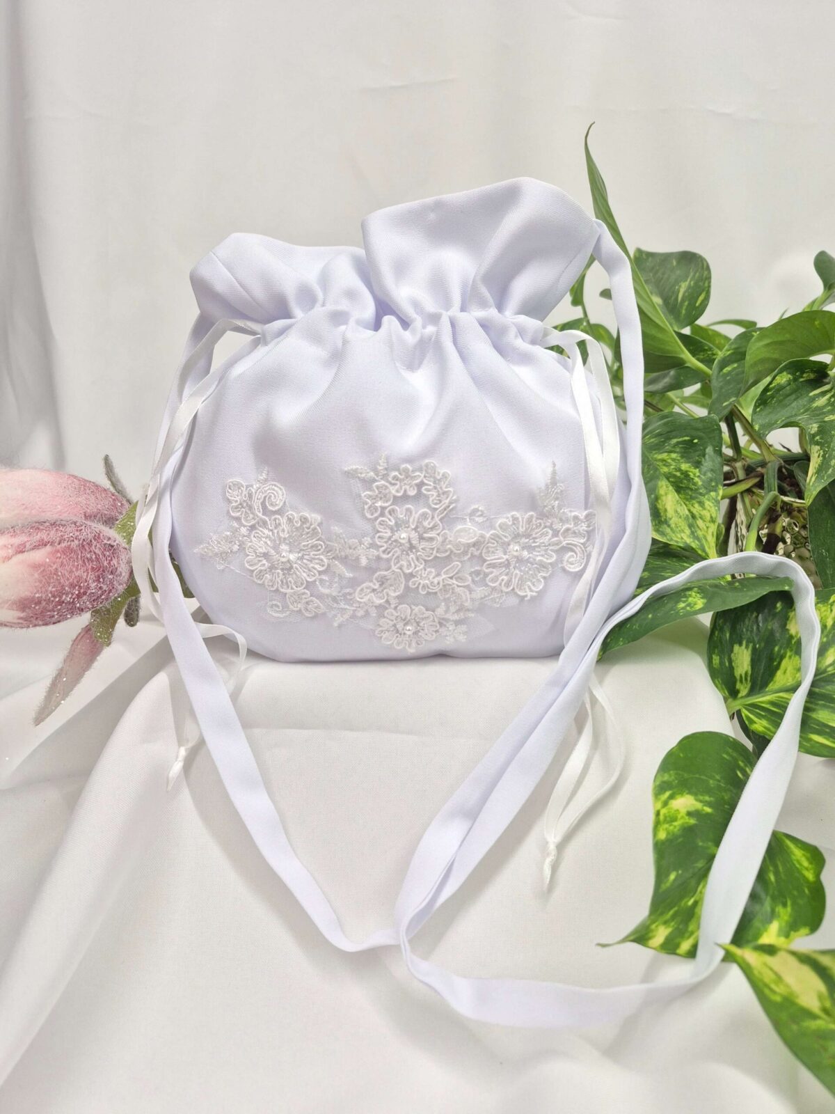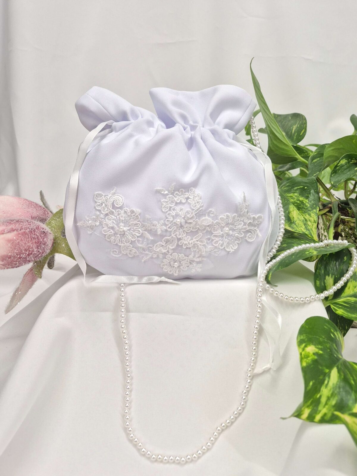 Saszetka uszyta jest z tej samej tkaniny, co alba (tkanina stretch). Saszetka pomieści książeczkę, chusteczki i różaniec oraz inne akcesoria.
