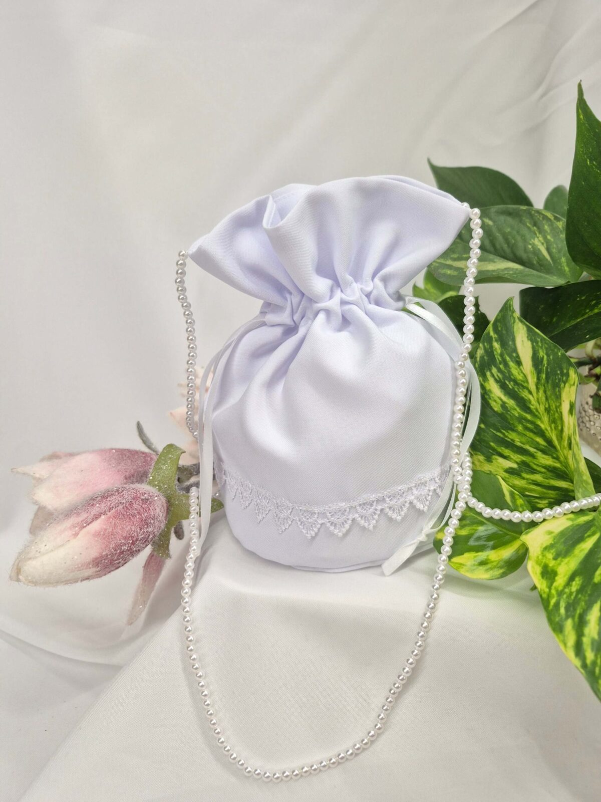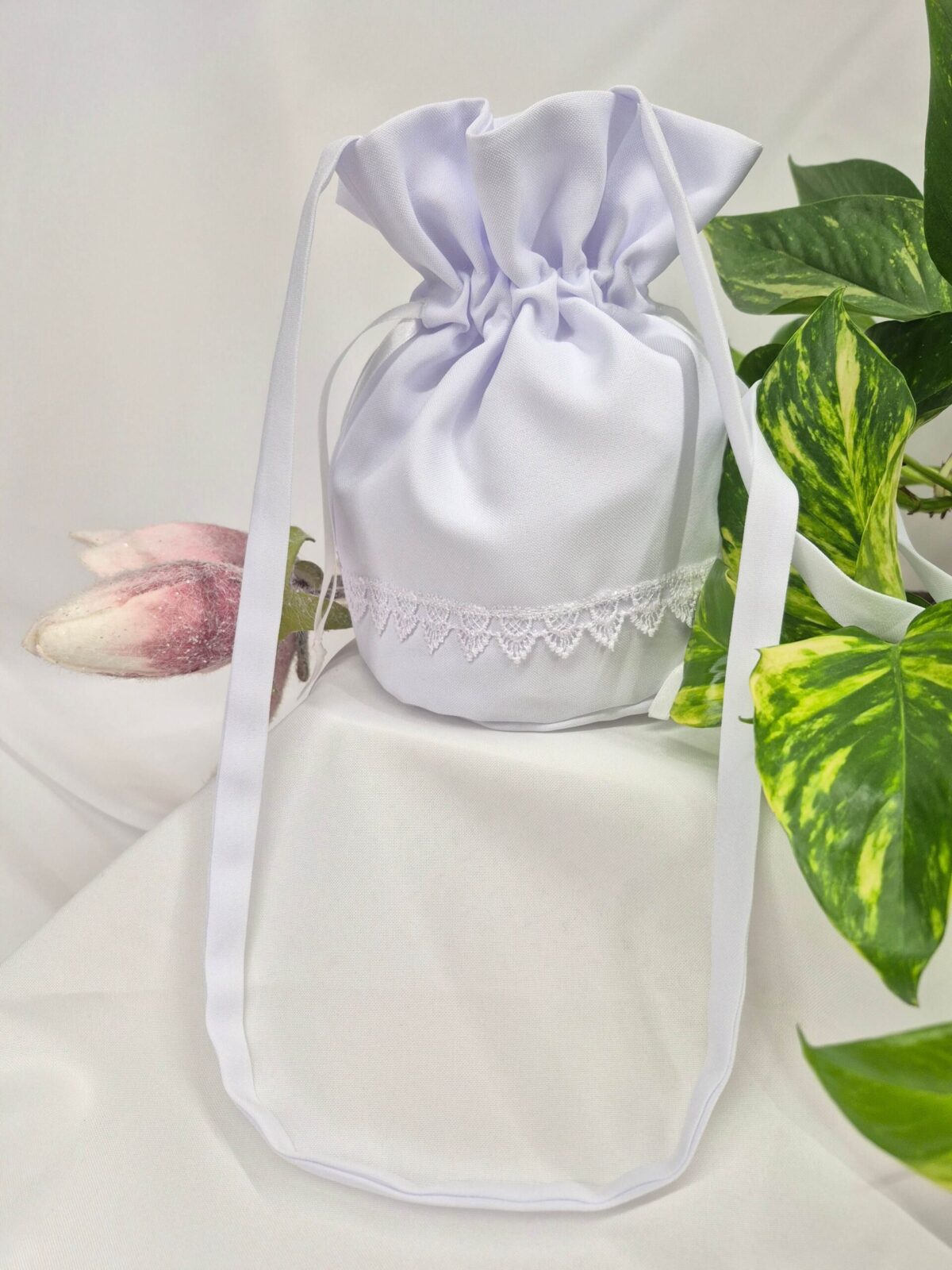 Worek uszyty jest z tej samej tkaniny, co alba (tkanina stretch). Worek pomieści książeczkę, chusteczki i różaniec oraz inne akcesoria.