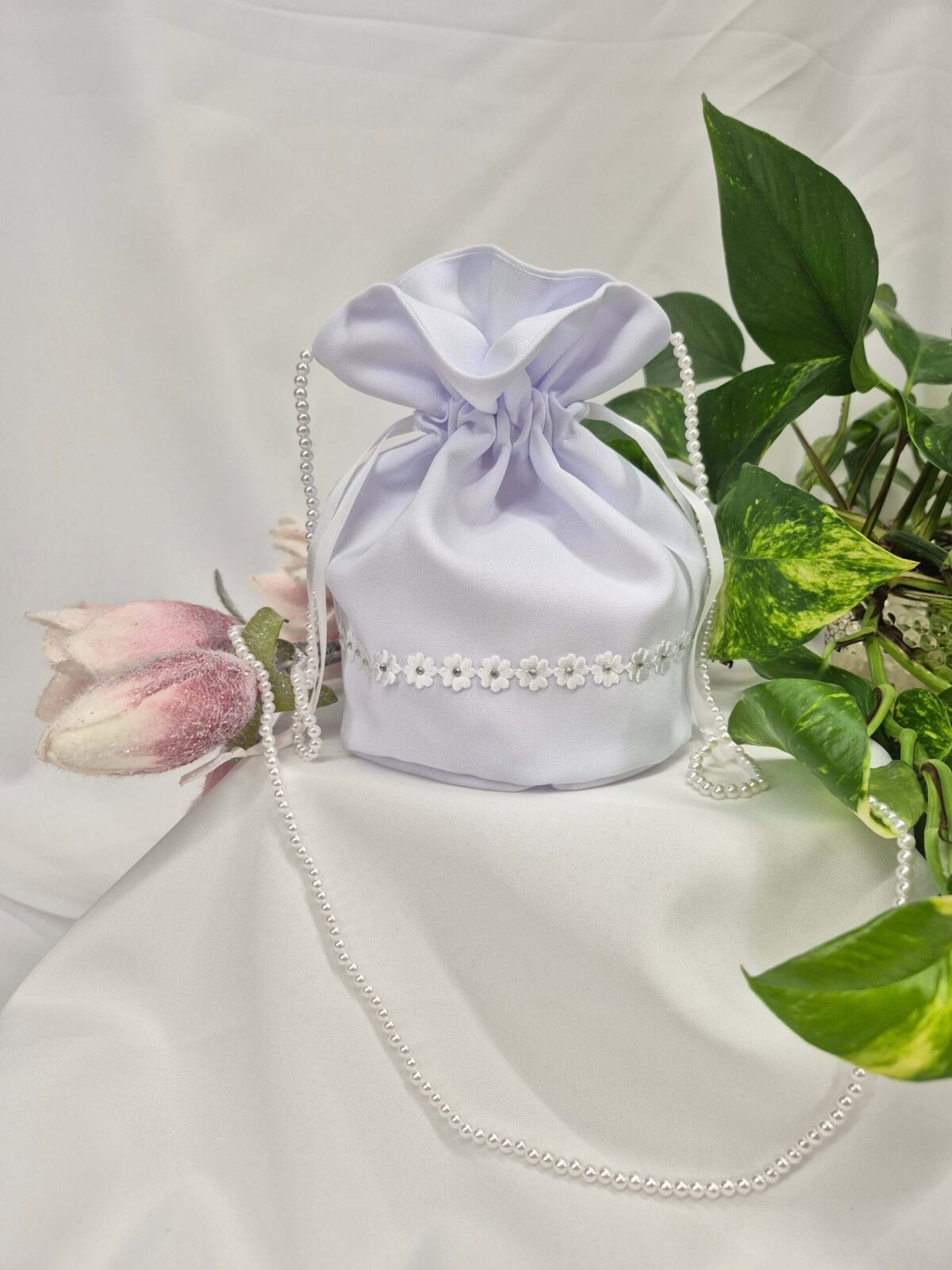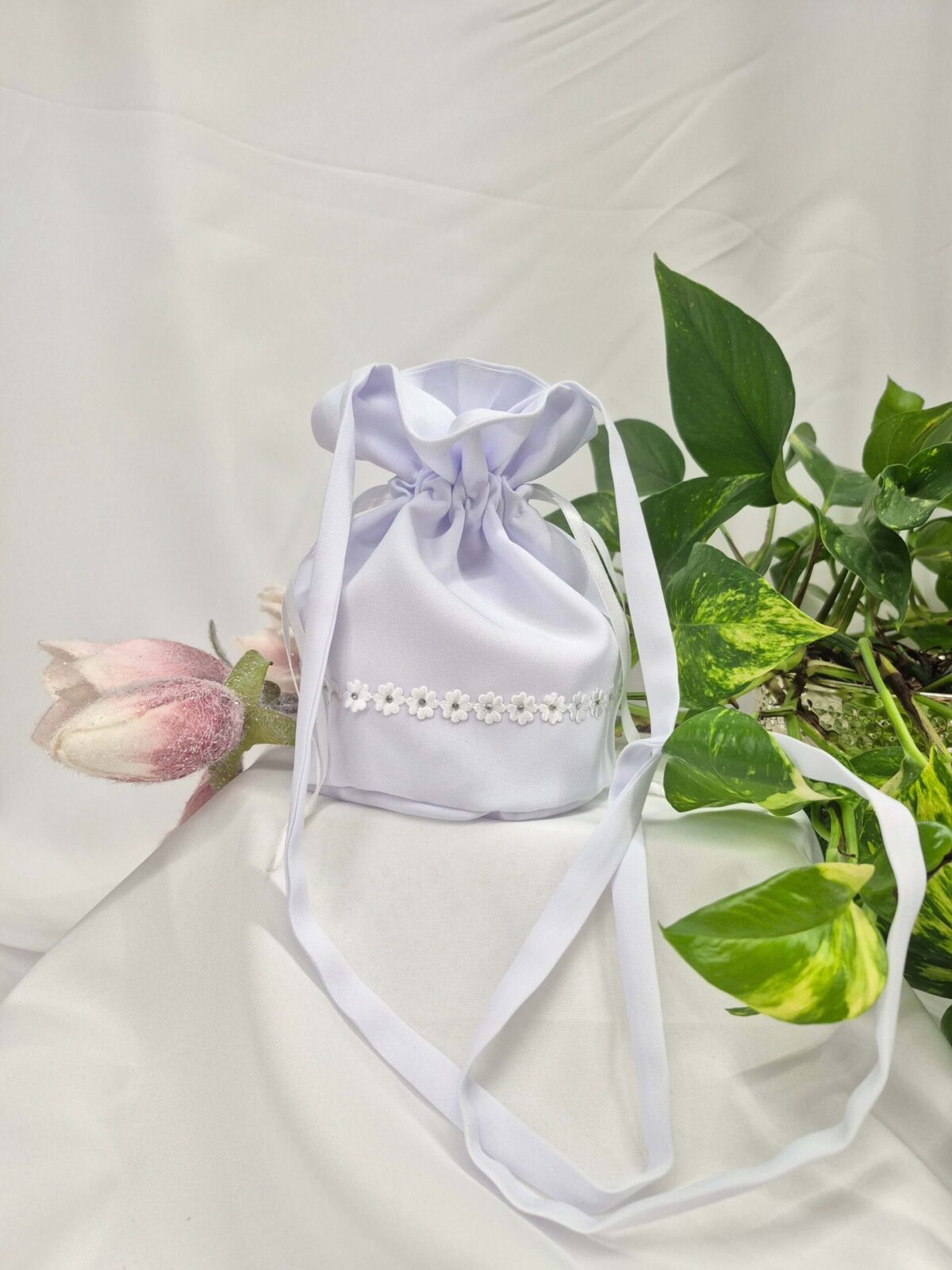 Worek uszyty jest z tej samej tkaniny, co alba (tkanina stretch). Worek pomieści książeczkę, chusteczki i różaniec oraz inne akcesoria.