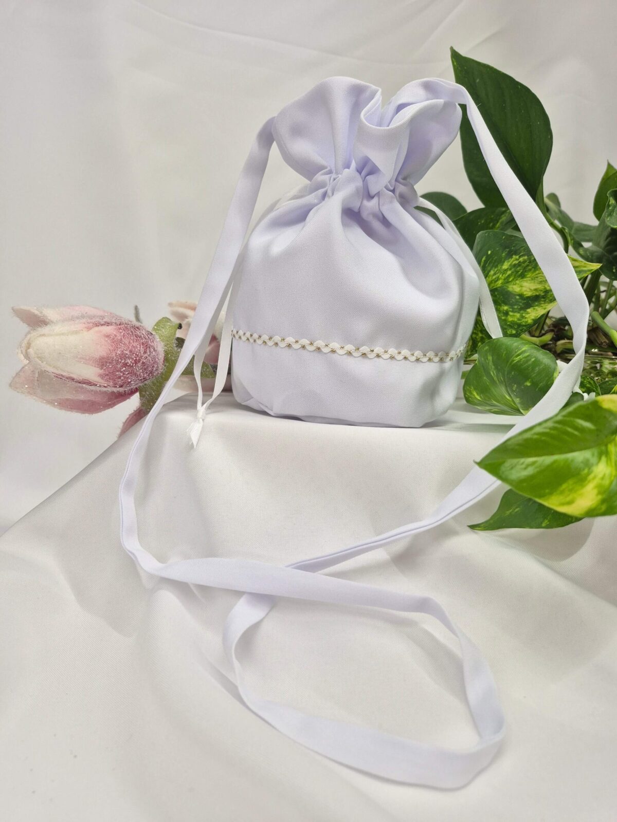 Worek uszyty jest z tej samej tkaniny, co alba (tkanina stretch). Worek pomieści książeczkę, chusteczki i różaniec oraz inne akcesoria.